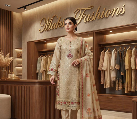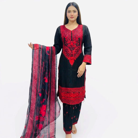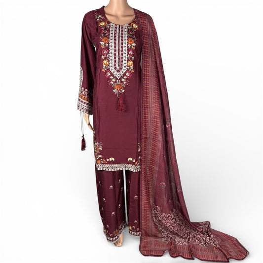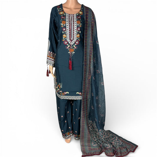Ready Made Asian Suit Embroidered Sequins with printed Duppata