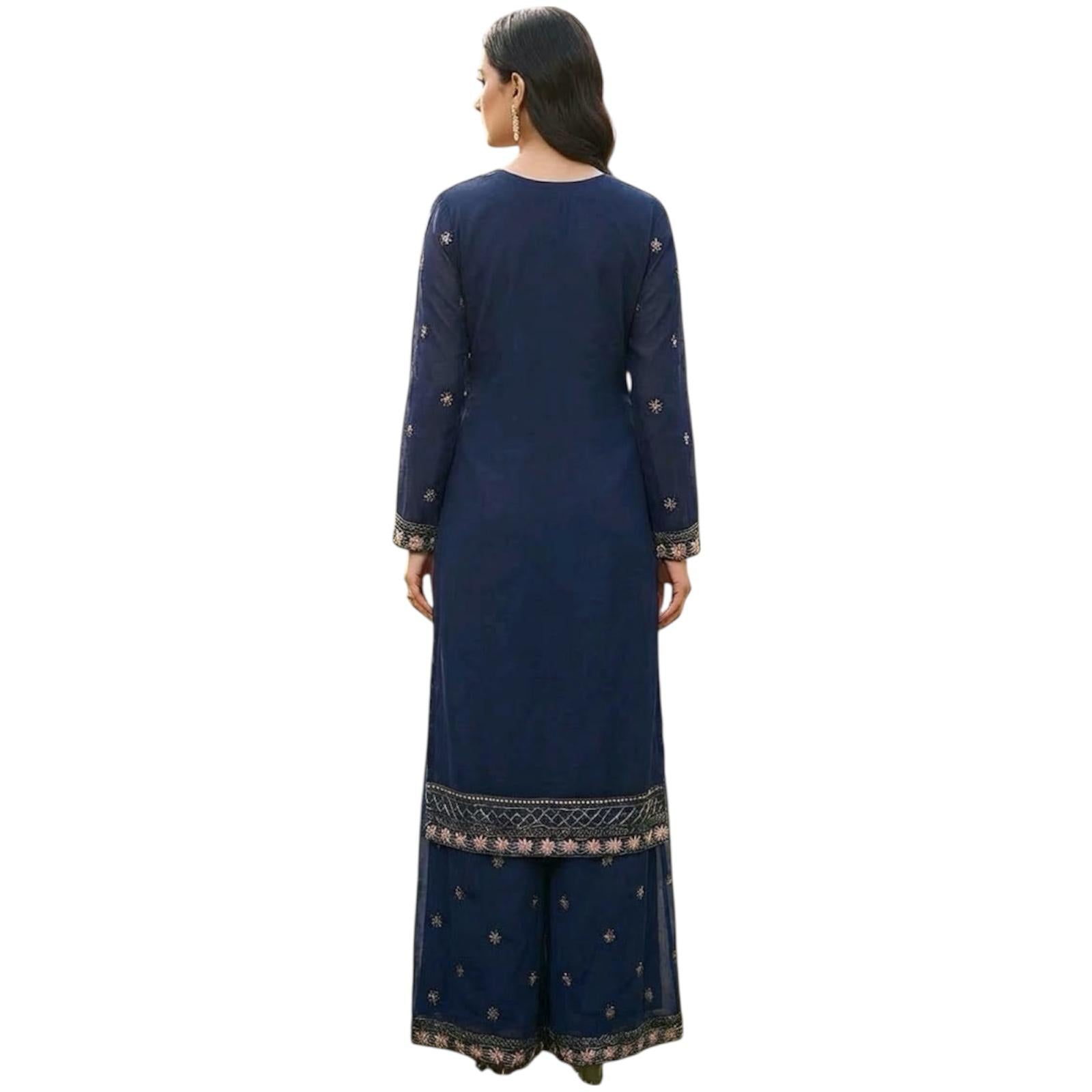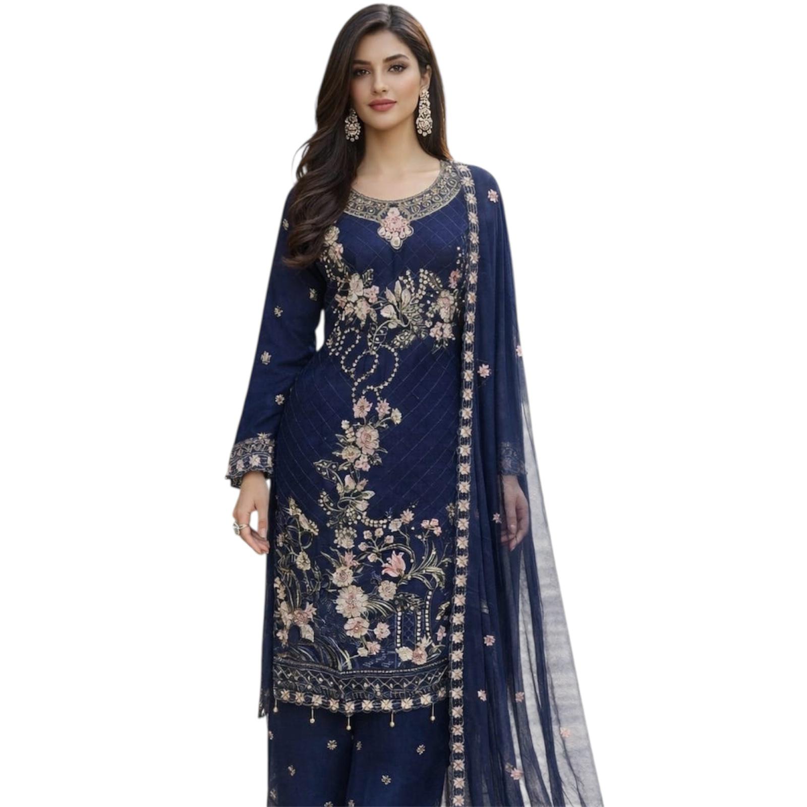 Three-piece Asian Chiffon Suit with Palazzo Trousers Elegant Stone & Embroidery Work for Comfort & Style Long Sleeves